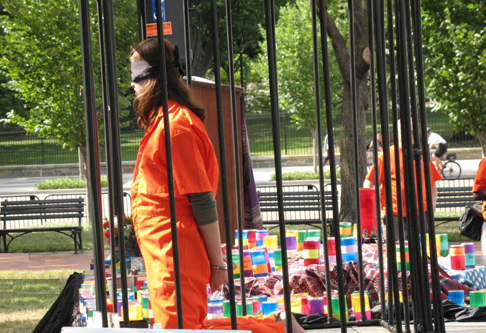تعدادی از شرکت کنند گان با شعار "شکنجه غیر قانونی است" خود را به میله های کاخ سفید نزدیک کرده و به هشدار پلیس در اين مورد توجهی نکردند . این گروه در میان شعار ها و فريادهای بقيه معترضين و در حاليکه برخی از تظاهرکنندگان طبل می نواختند توسط پلیس دستگیر و به ماشین های پلیس منتقل شدند .